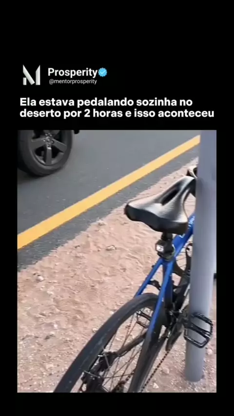 Enquanto ela andava de bicicleta sozinha no deserto por 2 horas, de repente do nada, o próprio governante do Dubai parou ao seu lado na estrada do deserto. 🤯 #dubai #empreendedorismo #marketingdigital #fy #business