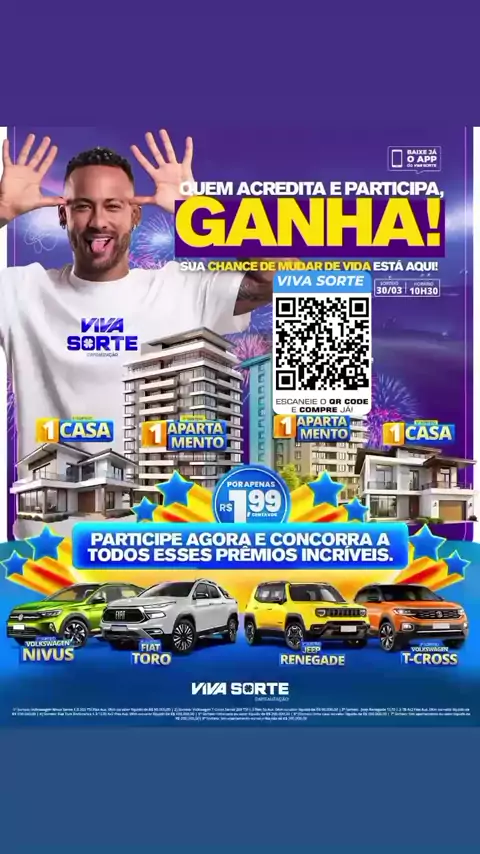 Link na bio 👈 VIVA SORTE SUA SORTE ESTÁ AQUI! Essa é a sua Semana de Sorte! Já pensou em sair do aluguel ou ganhar aquele carrão 0 KM com apenas R$ 1,99? No Viva Sorte isso é possível! Milhares de pessoas já ganharam e mudaram de vida, agora chegou a sua vez! #vivasorte #vivasortenaband #vivasorteoficial