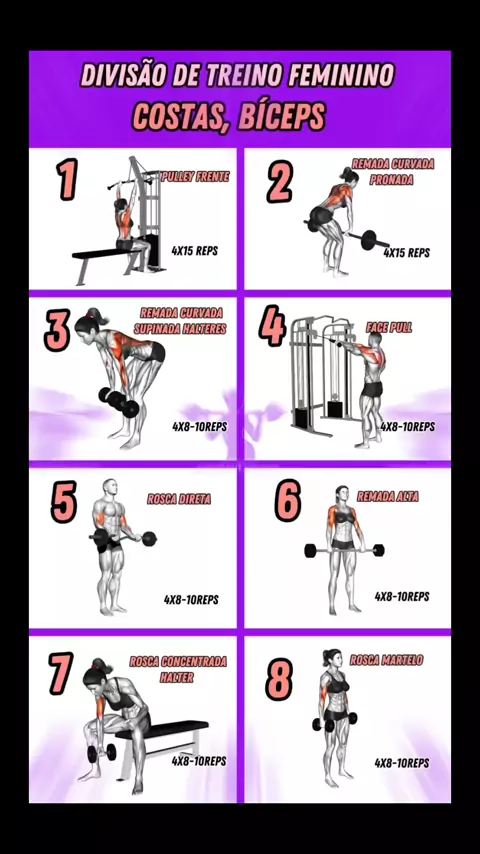 Treino de costas e bíceps para mulheres. Treino de costas e bíceps para mulheres.