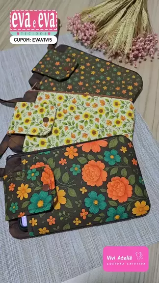 Que fofurinha!!! 😍 Essa é a Clutch Frufru, toda delicada e charmosa. ❤️ O passo a passo completo já está no YouTube, vai lá assistir e costure você também. ✂️ Os tecidos fazem parte da nova coleção da @evaeevatecidos , Caminho das Flores. 🌷 Visite o site que está na minha bio para conhecer a coleção completa e utilize o meu cupom EVAVIVI5 para suas compras. 🛍 😘 #artesanato #costura #dicadecostura #costuracriativa #auladecostura
