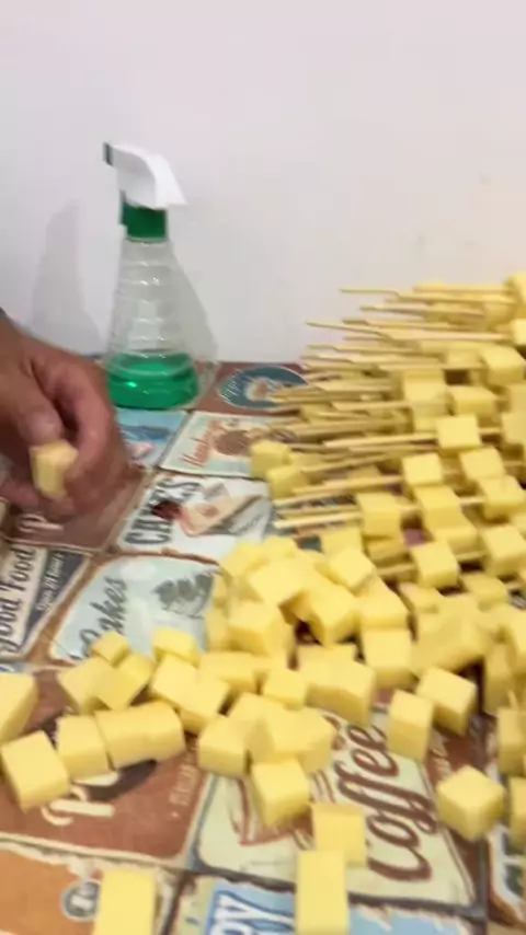 montando espetinhos de queijo para vender #trabalho #queijo #Comida #empreender