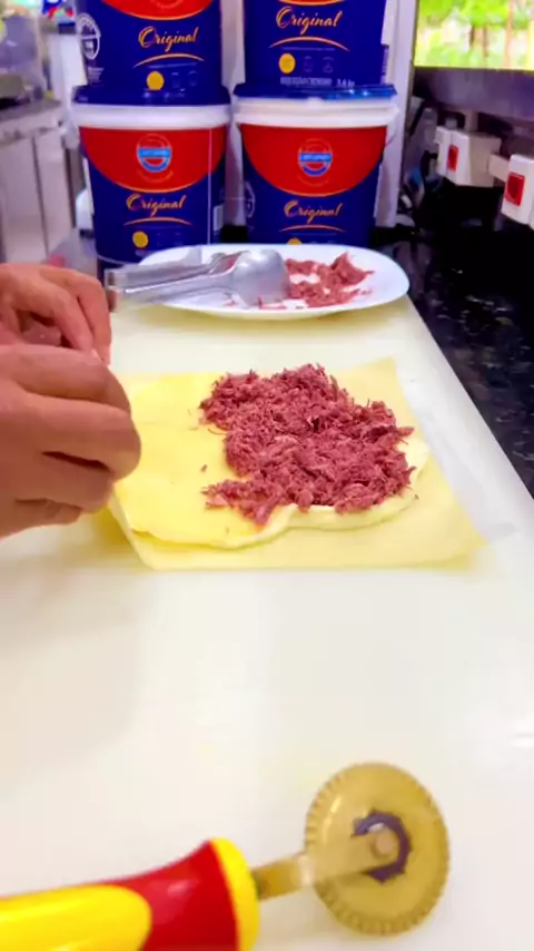 montando pastel #pastel #salgado #calabresa #pastelaria