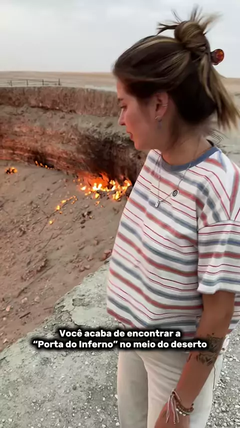 Há mais de 50 anos o fogo queima sem parar no deserto de Darvaza, no interior do Turcomenistão. El 1971 os soviéticos encontraram uma grande fonte de gás, mas por um acidente o solo cedeu, vazando uma quantidade que poderia se tornar um gigante desastre ambiental. Para controlar o gás atearam fogo, na expectativa que isso se acabasse em algumas semanas no máximo. Esse fogo jamais se apagou desde então. #turismo #darvaza #turcomenistão #viagem
