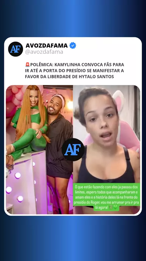 Kamylinha convoca fãs para ir até a porta do presídio se manifestar a favor da liberdade de hytalo santos