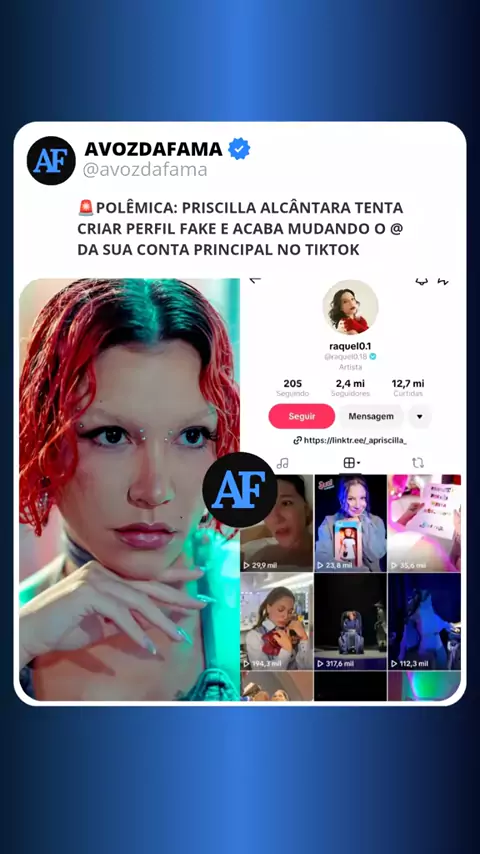 De acordo com internautas, a cantora PRISCILLA ALCÂNTARA teria mudado o nome de sua conta no ao tentar criar um perfil fake, Mas ainda não se sabe se é verdade..