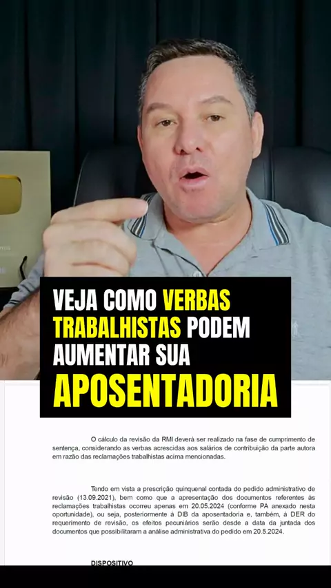 O Tribunal Federal decidiu: o INSS é obrigado a revisar aposentadorias para incluir verbas ganhas em ações trabalhistas! Se você recebeu horas extras, adicional de insalubridade ou FGTS na justiça, o valor da sua renda mensal pode subir consideravelmente, com direito a receber valores atrasados desde 2024. 📌 Neste vídeo você vai entender: Como funciona a revisão de aposentadoria por verbas trabalhistas. Quais direitos aumentam o valor do benefício (Horas extras, 13º, FGTS, etc). A diferença
