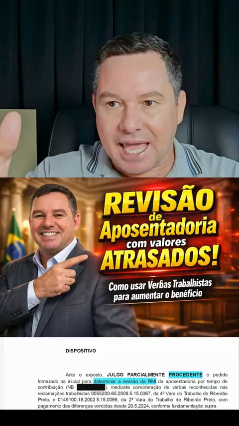 O Tribunal Federal decidiu: o INSS é obrigado a revisar aposentadorias para incluir verbas ganhas em ações trabalhistas! Se você recebeu horas extras, adicional de insalubridade ou FGTS na justiça, o valor da sua renda mensal pode subir consideravelmente, com direito a receber valores atrasados desde 2024. 📌 Neste vídeo você vai entender: Como funciona a revisão de aposentadoria por verbas trabalhistas. Quais direitos aumentam o valor do benefício (Horas extras, 13º, FGTS, etc). A diferença