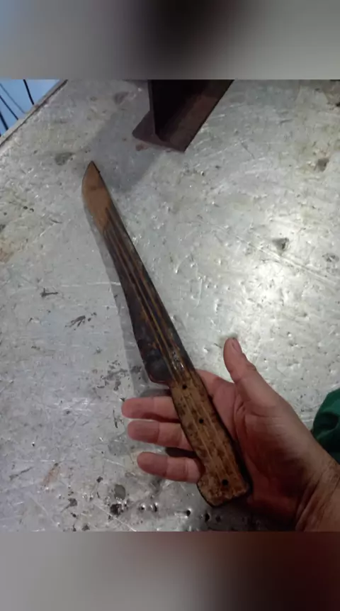 Acompanhe essa transformação, facão corneta antigo,em faca de churrasco!!!! #vscutelaria