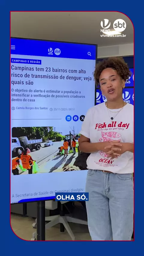 VTV NEWS INFORMA 🊟 Campinas tem 23 bairros com alto risco de transmissão de dengue. 🔗 Veja a matéria completa pelo link do story ou acesse vtvnews.com.br #vtv #vtvnews #viral #dengue #campinas