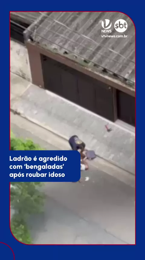 HOJE NÃO! 🦯 Um homem de 33 anos foi detido após roubar a corrente de um idoso de 77 anos, em Santos, no litoral de São Paulo. O suspeito tentou fugir de bicicleta, mas foi alcançado por testemunhas e acabou imobilizado no chão, sendo atingido com bengaladas, conforme mostram imagens que circularam nas redes sociais. . #vtv #vtvnews #jornalismo #viral #fy