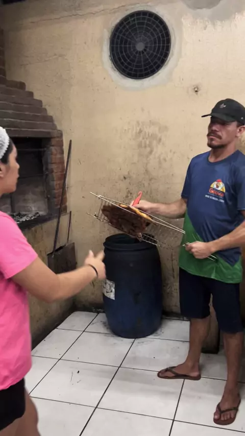 Gerlanne aprendendo a assar frango na galeteria Geova bairro cruzeiro Itapipoca Ceará