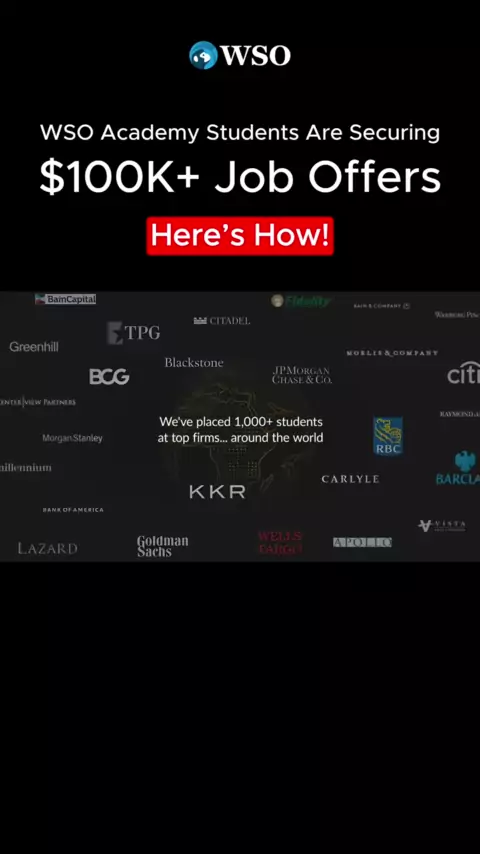๐Ÿš€ SECURE A TOP JOB OFFER OR GET YOUR TUITION BACK. ๐Ÿ‘Œ WSO Academy is the gold standard for high finance prep. ๐Ÿ“– We have helped thousands of students break into the 1% through a proven, structured system. What is inside the Academy: ๐Ÿค 1:1 Mentorship with industry pros. ๐ŸŽ™๏ธ 20+ Mock Interviews. ๐Ÿ“ˆ 6 Weekly Office Hours and Live Bootcamps. ๐Ÿง  300+ Hours of online training. The results are proven. You are next. โœ… Apply to WSO Academy now ๐Ÿ‘‰ Link in bio ๐Ÿ”— #investmentbanking #finance #wallstreet ...