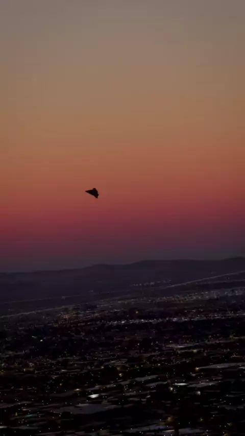 Um caça da próxima geração foi visto voando sem disfarces sobre Las Vegas na noite passada. # darkstar # sr72 # ufo # lasvegas # nevada # nellis # airforce # sapphire # halo # digital # vegas # usaf # scifi Este vídeo foi criado digitalmente.