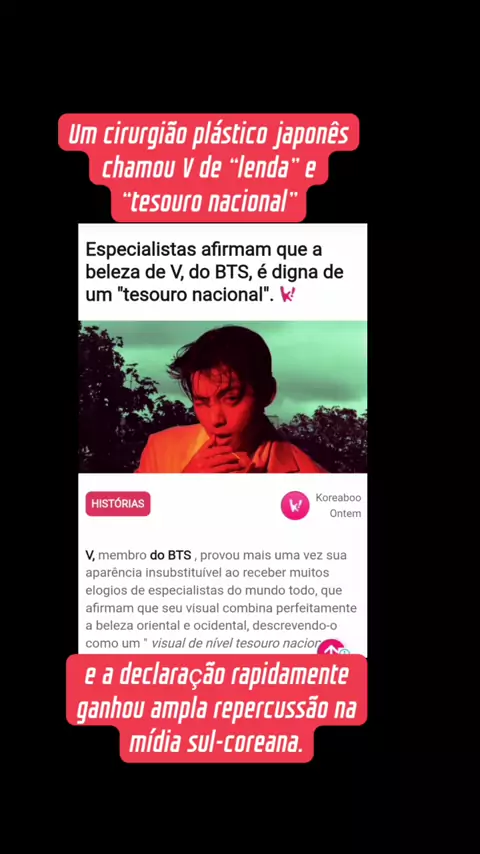 Taehyung foi elogiado por cirurgião plastico japonês - repercurtiu amplamente na K-midia #kpop #foryou #V #taehyung #Notícia