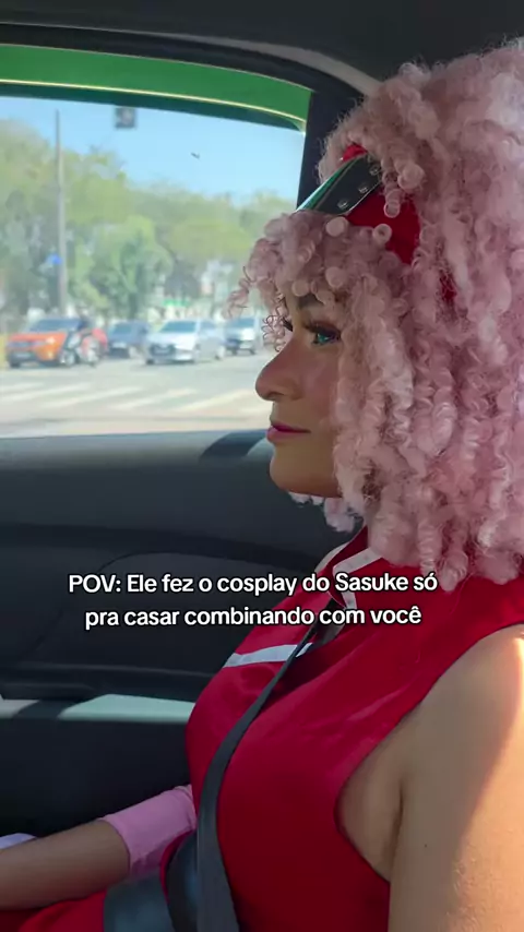 Eu sempre fui a Sakura cacheada, mas o Mattz ter feito cosplay do Sasuke só pra casar comigo foi auge 🥹🩷 #casal #Sakura #Sasuke #cosplay #gihemattz
