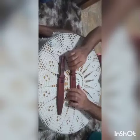 faca feita em aço inox com cabo e bainha de madeira.