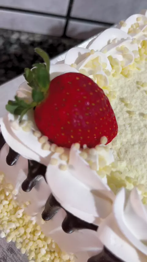 Bolo trufado de ninho 💛com morangos 🍓