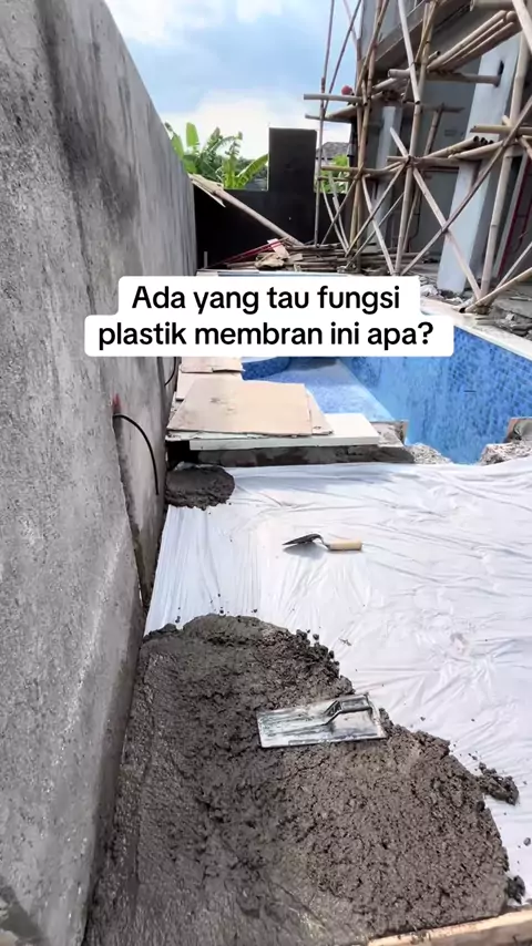 Fungsi plastik membran dalam pembangunan : 1. Menahan air & uap air dari tanah agar tidak naik ke lantai 2. Melindungi beton saat pengecoran supaya lebih kuat dan tidak cepat retak 3. Mencegah kelembapan (jamur, lantai basah, cat mengelupas) 4. Sebagai lapisan pemisah antara tanah dan beton agar bangunan lebih awet Biasanya dipasang di bawah plat lantai, pondasi, dan dak beton. Tanpa membran, bangunan lebih mudah lembap dan cepat rusak.#rumahimpian#rumah#kontraktor#kontraktormuda#villa