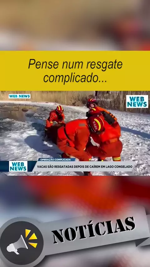 Vacas são resgatadas depois de caírem em lago congelado. China - Dezembro de 2021. #social #alerta #kwai #noticia #brasil