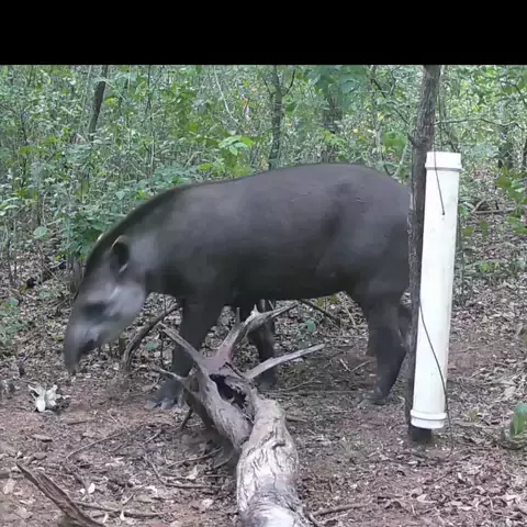 A rainha da mata apareceu! 🌿 A anta chegou para se banquetear com as sementes de tamborim que deixei no ponto de observação. 🐾✨ Quem mais acha esse bicho encantador? #Anta #Tamborim #CâmeraDeTrilha #CâmeraTrap #VidaSelvagem
