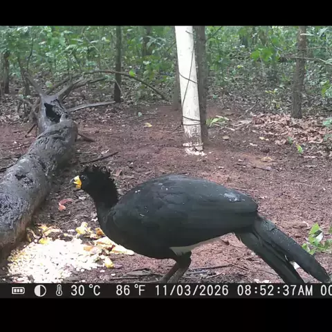 Pela manhã a anta fez uma rápida aparição, mas logo os mutuns chegaram para conferir o que restou no bebedouro. #Anta #Mutum #VidaSelvagem #CâmeraDeTrilha #CâmeraTrap