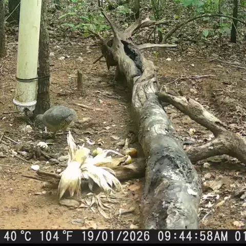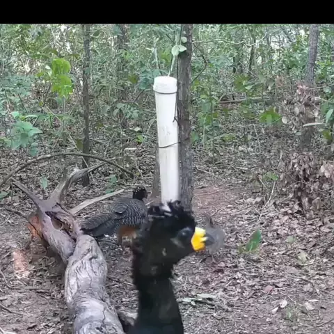 Pela manhã a anta fez uma rápida aparição, mas logo os mutuns chegaram para conferir o que restou no bebedouro. #Anta #Mutum #VidaSelvagem #CâmeraDeTrilha #CâmeraTrap