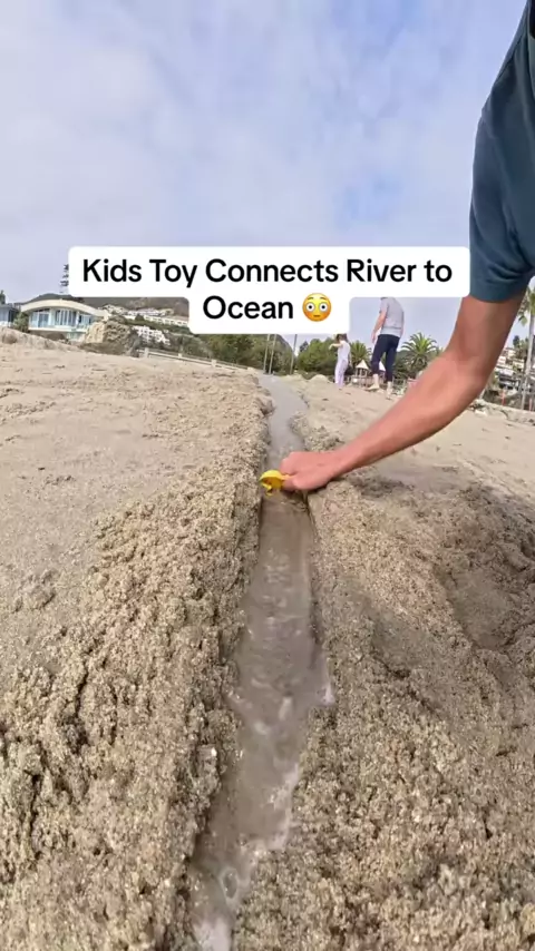 Como uma onda de rio se forma do início ao fim com um brinquedo infantil conectando um rio ao oceano