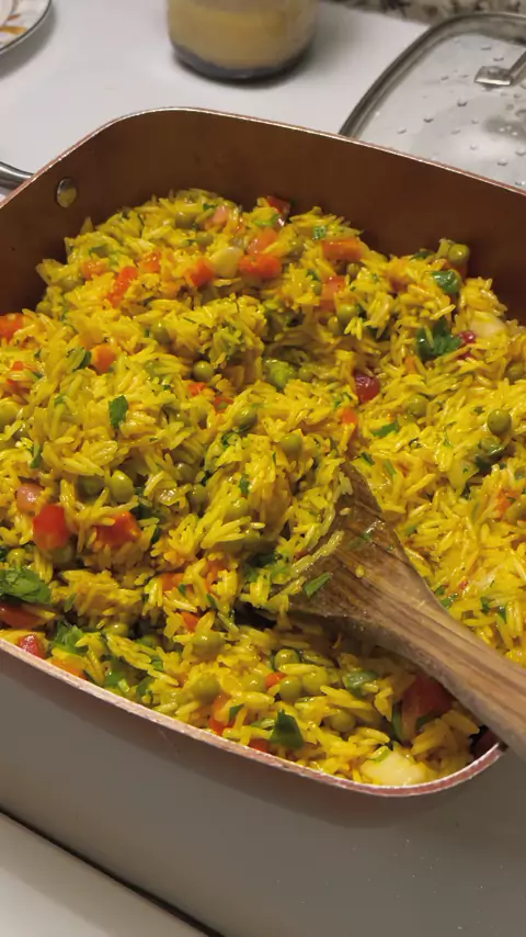 I made this rice for lunch today, it was delicious.😊😋 # @Eu fiz esse arroz para o almoço hoje, ficou delicioso.