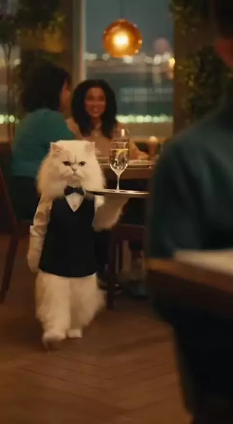 A white cat works in a restaurant. #whitecat #funnycat #shortsvideo