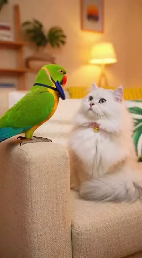 A parrot proposes to marry a white cat. #trendingreel #ramadan2026 #shortsvideo #funnycat #trendingnow