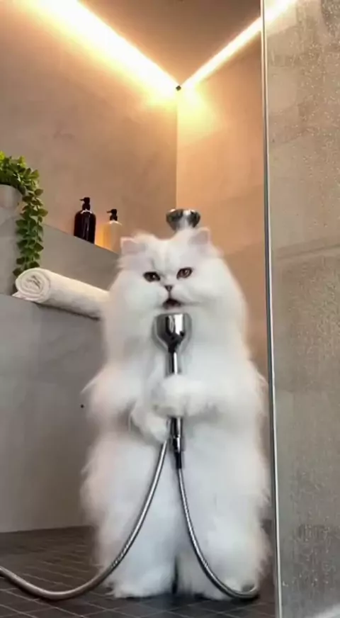 A white cat is taking a shower. #whitecat #funnycat #shortsvideo #takeashower