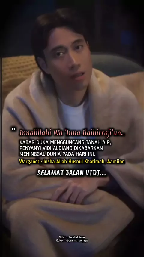 Innalillahi Wa'inna Ilaihirraj'un. Kabar Duka, Penyanyi Vidi Aldiano Meninggal Dunia, Selamat Jalan Vidi, Insha Allah Husnul Khatimah, Aamiinnn Yaa Rabb. #vidialdiano #dukacita #artis #info #berita