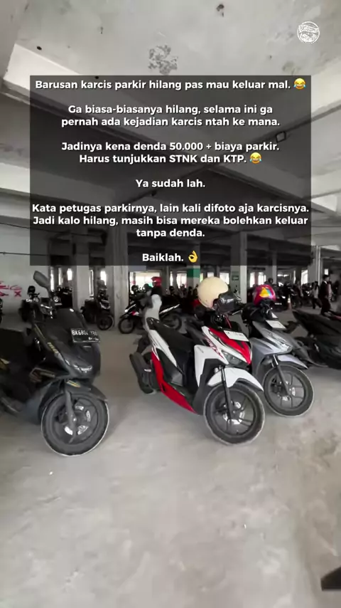 Barusan karcis parkir hilang pas mau keluar mal. 😂 Jadinya kena denda 50.000 + biaya parkir. Harus tunjukkan STNK dan KTP. 😂 Kata petugas parkirnya, lain kali difoto aja karcisnya. Jadi kalo hilang, masih bisa mereka bolehkan keluar tanpa denda. Baiklah. 👌 BroSis ada yang pernah kehilangan karcis parkir jugak? _ 🔥 Ada apa di Pekanbaru? Cek review @brosispku 🌟 Cek beragam highlight di @brosispku 🍻 Ingin tampil di brosispku? Hubungi WA tim iklan @brosispku di bio 🌐 Follow juga I...