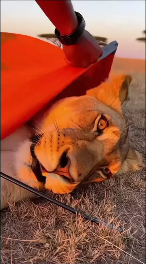 Bought a tent for me, turns out it was just a toy for her. 🦁⛺ #lioness #catsbeingcats #safari #funnyanimals #wildlife