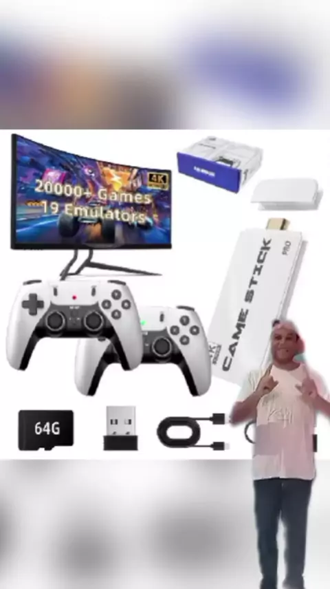 2025 NOVO Vídeo Game Stick M15 Pro 4k 64gb Hdmi Com 2 Controles Se Fio +20mil Jogos Moby #viraliza #Shop