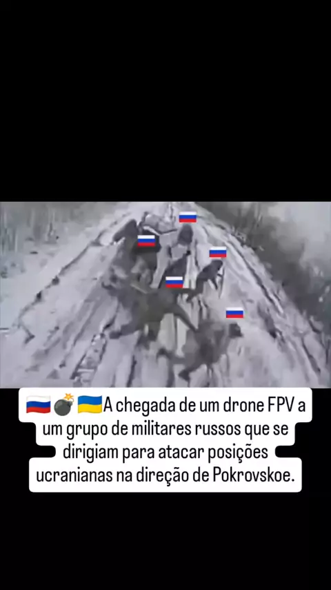 Um drone FPV atinge um grupo de militares russos que avançava para atacar posições ucranianas na direção de Pokrovskoe. As imagens mostram o momento do impacto, evidenciando o uso crescente de drones no campo de batalha. O confronto faz parte dos intensos combates registrados na região, onde forças ucranianas e russas disputam posições estratégicas. O uso de tecnologia FPV tem sido cada vez mais decisivo nas operações ofensivas e defensivas. #Rússia #Ucrânia #Conflito #DroneFPV #Pokrovskoe