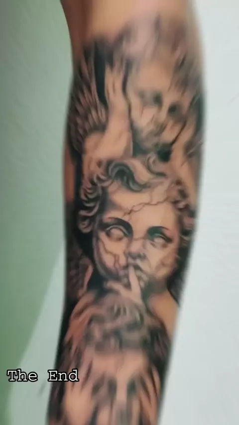 trabalho de hoje 😎#londrinatattoo #angeltattoo #tattoopretoecinza #tattooreligiosa #tattooparatodos