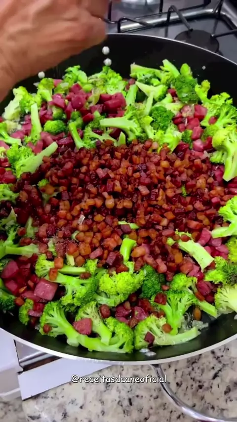 macarrão com brócolis bacon e calabresa #comidaboa #comidacaseira #petisco #delicia #receitafacil