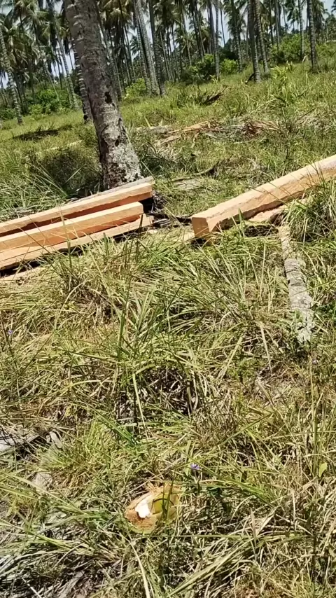 tábuas de coqueiro e linha de coqueiro