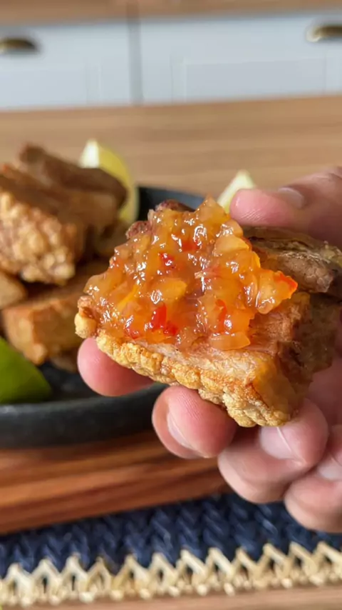 Geleia de abacaxi com pimenta e uma panceta frita é a combinação perfeita! 😲🤤 Ingredientes:👇🏽 1 abacaxi 🍍 2 xícaras de açúcar 🧂 3 pimentas dedo de moça 🌶️ 1 limão 🍋‍🟩 Deixe cozinhar em fogo alto sempre mexendo até ver o fundo da panela. E aí, gostou? Então já marca o @ para fazer essa delicia pra você! 🥰