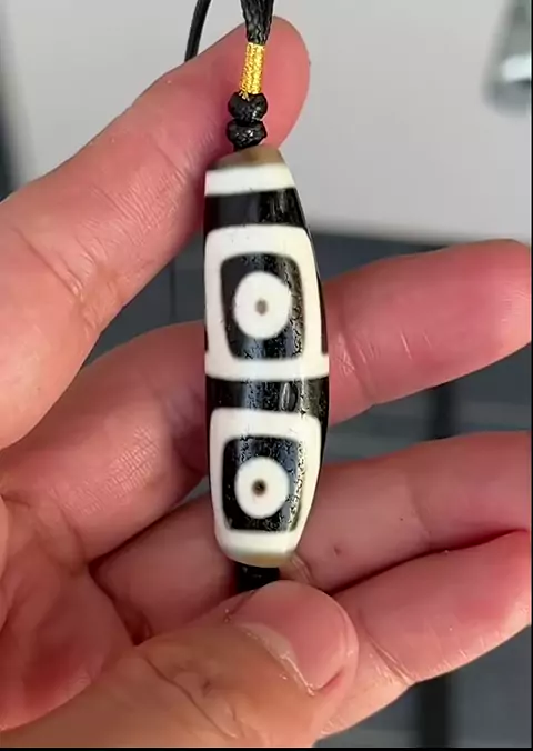 A very special ox horn type, black and white earth gate four-eyed heavenly beads #Four-eyed Heavenly Pearls of the Earth Gate #Looking for Tibetan Old Objects #Pure Heavenly Pearls