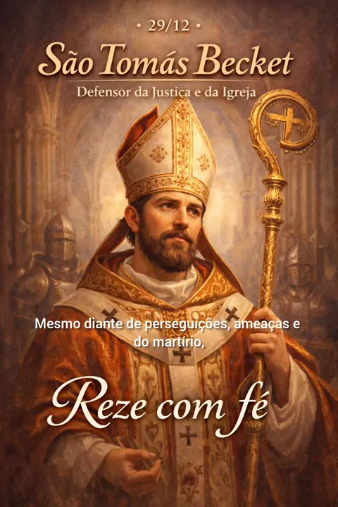 🕊️ São Tomás Becket, defensor da justiça e da Igreja, nos ensina que a verdade deve ser vivida com coragem, mesmo quando custa caro. Que seu testemunho fortaleça nossa fé e nos ajude a permanecer firmes no que é justo diante de Deus. ✝️ 📅 29/12 ✨ Reze com fé 👉 Reze conosco nos comentários 👉 Curta e compartilhe para que mais pessoas conheçam este santo 👉 Salve este vídeo para rezar novamente. #saotomasbecket #catolico #catolicostiktok #santododia #santo