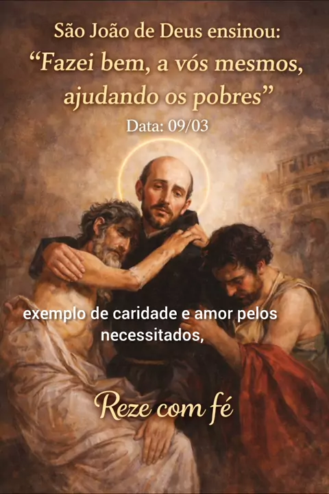 A vida de São João de Deus foi marcada pela caridade. Ele dedicou sua vida a cuidar dos doentes e dos pobres, mostrando que ajudar o próximo é um verdadeiro caminho de santidade. 🙏 💬 Comente: “São João de Deus, rogai por nós!” 📲 Compartilhe para levar essa mensagem de fé a mais pessoas. #saojoaodedeus #santododia #santo #catolicos #catolico