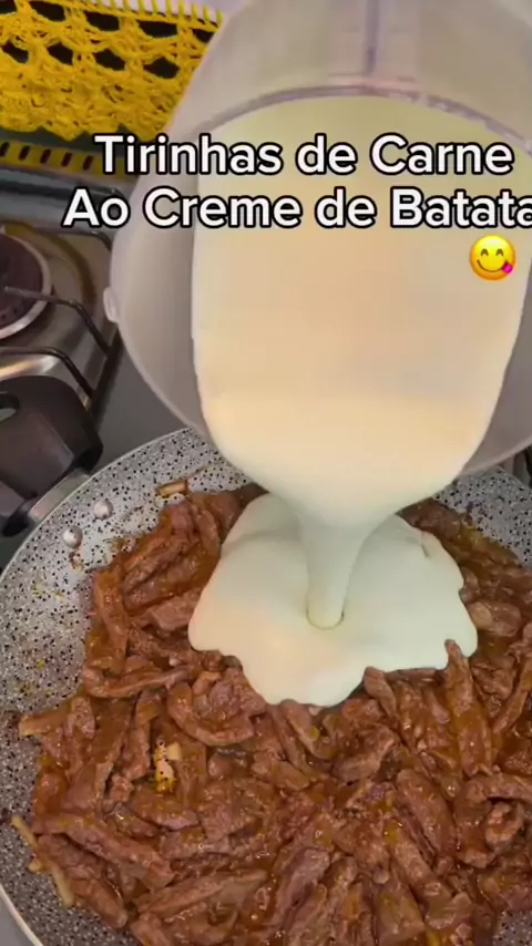 tirinhas de carnês com creme de batata 🤤🤤 #Comida #Receita #fy #kwai #delicia