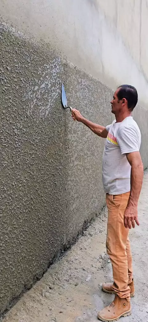 mostrando como fazer textura projetada usando argamassa