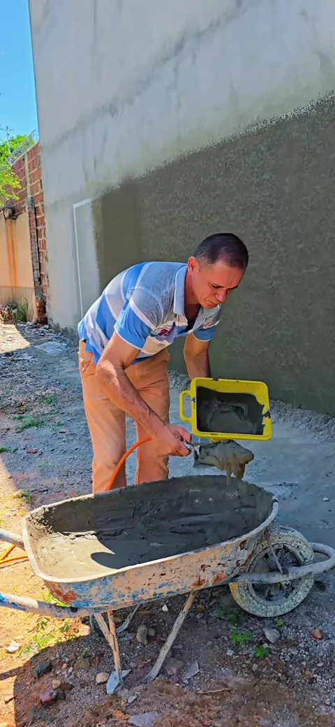 mostrando como fazer textura projetada usando apenas argamassa
