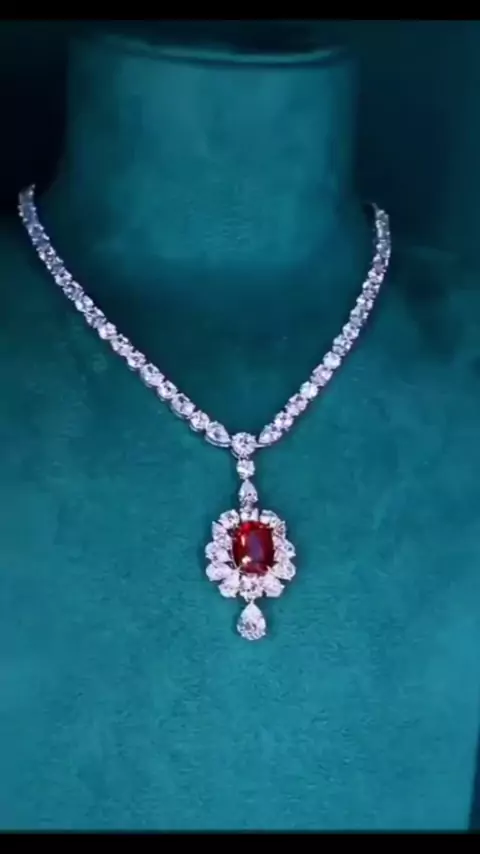 Fine Jewelry Lab Grown Ruby Pendant with Diamond Luxury Wedding Necklace,精美珠宝实验室培育红宝石吊坠配钻石奢华婚礼项链 #jewelry #钻石 #奢侈品