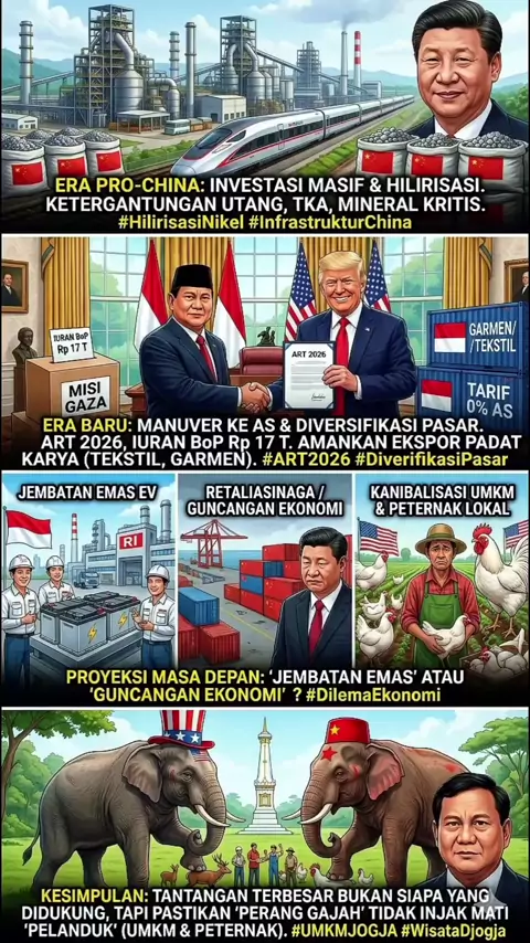 Mengapa RI Mendadak "MERAPAT" Ke AMERIKA Ditengah Perang Teknologi GLOBAL? 🇮🇩🦅🐉 Banyak yang kaget dengan manuver Presiden Baru Prabowo meneken kesepakatan dagang ART 2026 dengan AS. Kenapa tiba-tiba putar haluan dari yang sebelumnya sangat Pro-China? Jawabannya: Survival Strategy di tengah Perang Teknologi & Ekonomi raksasa! 💻🌐 🎯 ALASAN UTAMA & ANALISA KEDEPAN Donald Trump mengancam dunia dengan tarif pajak impor 19%. Kalau RI diam saja, jutaan buruh pabrik (tekstil, garmen, alas kaki)