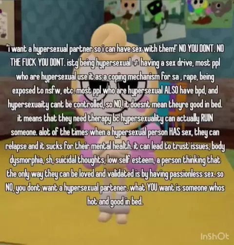 Stop romanticizing a trauma response what the fck is wrong with ya’ll? #truamaresponse #repost #hypersexuality #triggerwarning #fyp