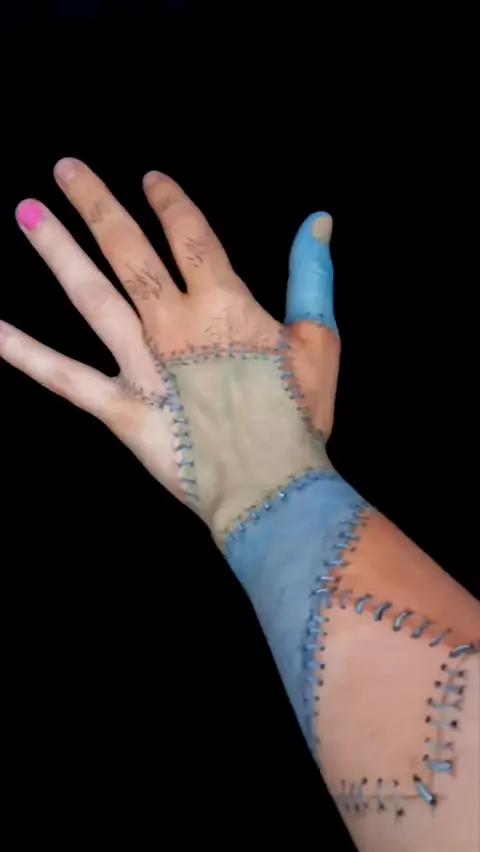 Who does not love a frankenstein's monster look? This is done with bodypaint #makeup 💚 #Kwaitalent #amaKwai